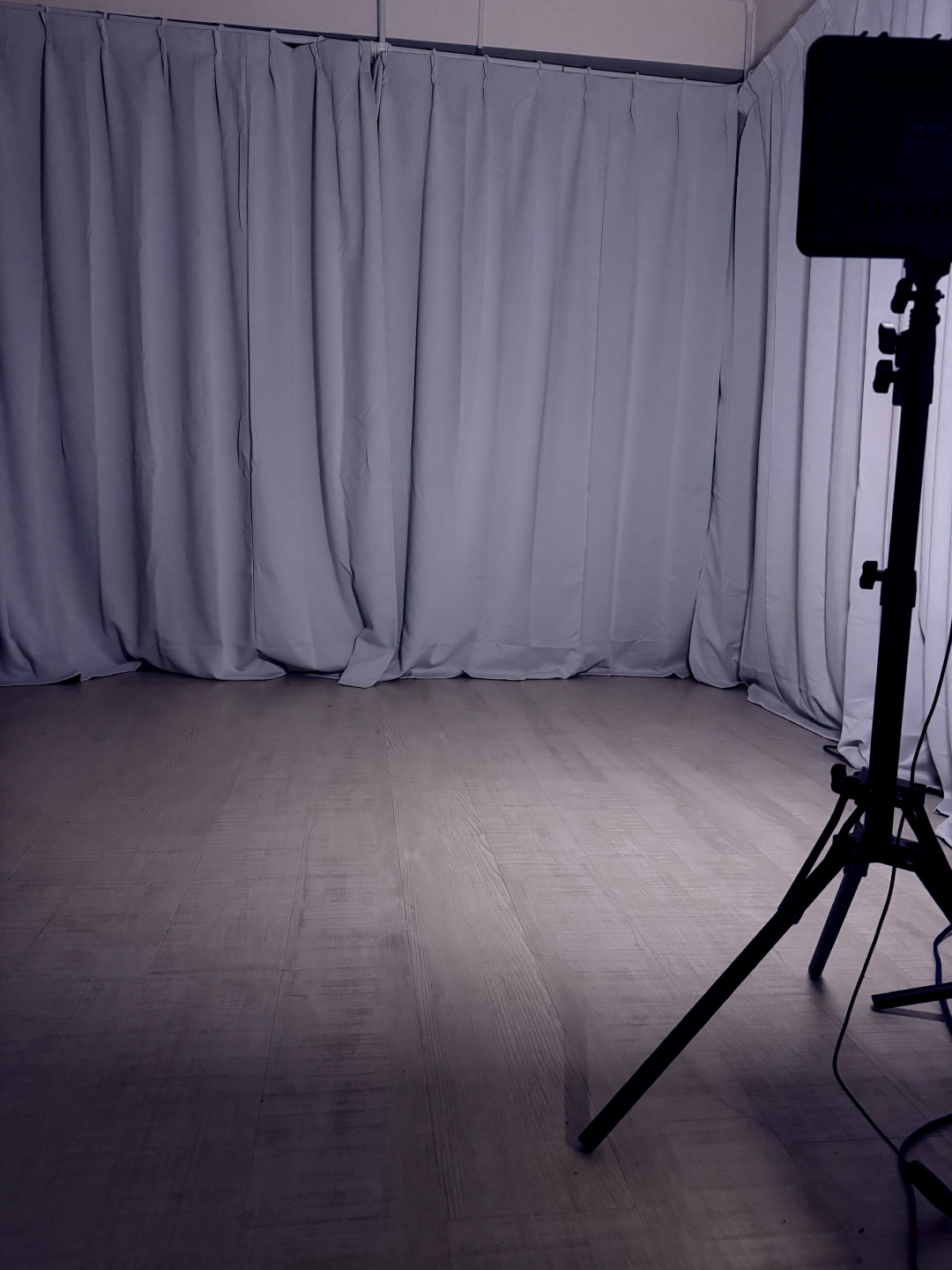 撮影スペースの様子。背景はカーテンで整えています。